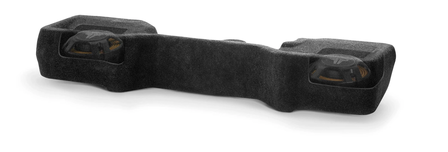 Luckily, our engineers are experts in maximizing bass from minimal space and developed a subwoofer solution that fills your Quad Cab with loads of powerful bass output. Featuring a 100% fiberglass, sealed enclosure design, this Stealthbox® houses two of our innovative 10TW3 thin-line subwoofers and installs neatly under the rear seat, without compromising rear seat comfort or folding. We even left space on the enclosure that’s perfect for a small, hidden amplifier installation!