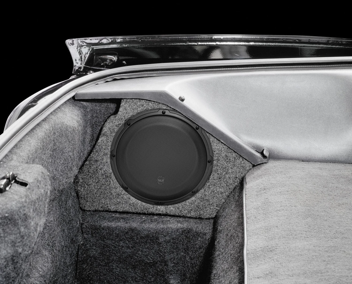 If you drive a Camaro or Firebird and don’t want to sacrifice any storage space, pay close attention. This Stealthbox® tucks away into the little nook in the left corner of the hatch well and will not interfere with the storage of T-tops. The corner loading of the Stealthbox® results in bass output and quality that far exceed that of a conventionally installed single 10-inch sub.