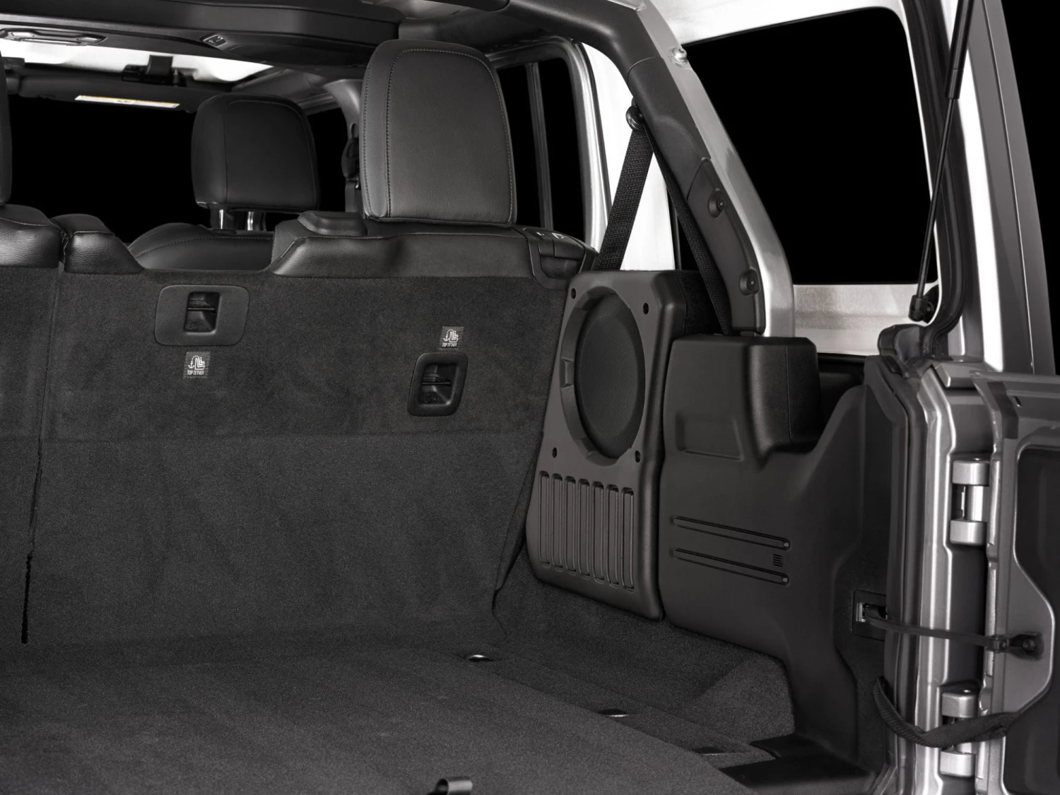 Combining our advanced thin-line subwoofer technology with a form fitting enclosure design, these Stealthbox® systems deliver outstanding sub-bass performance in your 4-door Wrangler, without consuming excess cargo space.